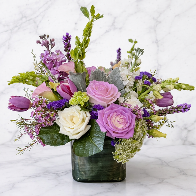 A charming Easter arrangement and sweet original design {lovely low profile} Premium and delicate for the season. Creating a soft flowing movement and creative luxury that has beautiful tones.